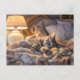 A cat lounges on a couch with blanet and a lamp in a softly lit room. The scene evokes comfort, quiet, and cozy domestic life.