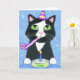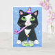 En söt tuxedo-katt firar sin första födelsedag. Inköp för alla kattälskares B-dag! Det här är en originaldesign av Jamie Wogan Edwards.