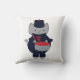 Do you like cute throw pillows? This throw pillow features a cute gray kawaii cat playing the drums while wearing a navy blue and red marching band uniform.