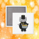 Tittar du en gåva till perkussionisterna i ditt liv? Den här söta magneten har en grått-katt som spelar en snö-trumma medan den bär en svart och guld-marschbanduniform.