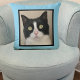 Denna vackra kattminnesstund dekorativ kudde är en perfekt gåva till någon som just har borttappad sin kattunge eller en underbar gåva till sig själv. Framsidan innehåller ett foto av kattdjuret som är svart med blå gräns. På den omvända sidan är ett pawprint med en underbar minnesomvänd. Du kan anpassa kattens namn och kattens år. Den här kudden gör en vacker keepy för kom i åratal. Lodrät och designad copyrightpeachesthuxedocat