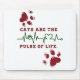 This design features a message for cat lovers, stating "CATS ARE THE PULSE OF LIFE." The layout combines text with a heartbeat line, symbolizing the love and importance of cats. The heartbeat line is green and includes a small paw print and heart shape as part of the line, reinforcing the connection between cats and vitality. Surrounding the text and heartbeat are red, grunge-style paw prints, adding a playful, rustic touch.