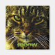 Stäng foto av vackra katten ansikte. Det ser ut som hypnotiserande. Du kan knappt sluta tittar tillbaka! Text "Meow" kan enkelt anpassas eller tas bort.