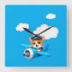 A charming cartoon cat pilot glides through the vibrant blue sky, weaving gracefully between fluffy white clouds. His orange fur stands out against his big blue eyes as he flies a sleek blue plane, complete with a classic blue pilot hat that matches the sky.