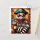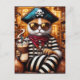 Cat pirat drickande av kaffe, enkaustik konst stil vykort