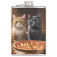 Bilden är fyra katter Sitta runt ett Bord med ett Redo i Pizza för att äta.