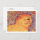 Ett vykort för bra med djurillustration Kat-profil av den brittiske konstnären Louis Wain (1860-1939). En porträtt av en söt orange katt mot tapet bakgrund.