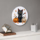 Add a playful touch of spooky charm to your space with this Black Cat & Pumpkins Halloween Wall Clock. Featuring an adorable black cat alongside two pumpkins, this design blends cute and spooky vibes perfect for the fall season.