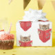 Tabby katt med glasögon som avläder röda mösrecept bok på vit bakgrund