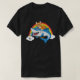 Cat Riding Shark som spelar golf med regnbågsgrafi T Shirt