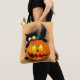 Cat Roligt Halloween Character som biter en Pumpki Tygkasse