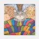 Två människor som sover med en lycklig-katt mellan dem under ett lapptäcke