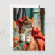 Cat Sleeping by Window with Pillow and Blanket Vykort