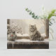 Julkort med en målning av vacker grått cat sitta i ett fönster på en snövinter-dag. Personlig på baksidan med ditt budskap och namn. Kontakta mig om du behöver hjälp med din anpassning eller om du vill be om ytterligare matchning eller samordning av Zazzle-produkter.