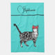 Cat Tabby Pastel Cats Womens Teal Aqua Name Kökshandduk