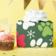 Slå ihop helgdag-gåvor till ditt favoritkattunge med denna papper för julomslutning som har en fin mönster av katt tass avtryck och snöflingor i rött, grönt och vitt.