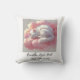 Bring a touch of calm to your home with this gentle white cat pillow. Featuring a peaceful feline curled up on a pastel pink cloud, this design is paired with the comforting message: