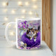 Cat with Purple Eyes in Purple Yarn and Flowers Kaffemugg