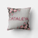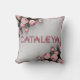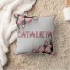 CATALEYA Embroiderade Ro Dekorativ kudde & Blanket A 3D-rendering av en mysigt vit filt med tunn rosa gräns. Filten är försedd med rosa ros och har namn "CATALEYA" som är broierat i fetstilt brev i mitten. Varje brev är inlindat i ett rosa band och tillför lite elegans. Filten är perfekt för att tillföra lyx och personlig anpassning till vilket sovrum som helst.