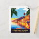 Catalinön poster. Vatten reflektioner över byggnad vid kusten. Vintage resor-vykort i pulserande färg.