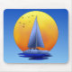 För kaptener besegra till däckhänder, att segla för vektorcatamaran som är grafiskt med solnedgång, och fiskmåsar.