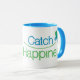 The word “Catch” appears in blue, representing the sky’s limitless potential and the throat chakra, where truth and expression flow freely. The word “Happiness” shines in green, symbolizing growth, grounding, and the heart chakra’s energy of love and compassion.
