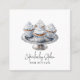 Det här vita, söta affärskortet med cuptårta med vattentäta konditor har en serveringsbricka med lustigt frostat muffinsar, med taggen: gjord med kärlek. Enkel och elegant. Ditt namn i handskript.