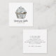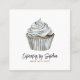 Affärskortet med den här snygga, söta bakkonditorn för vattenkakor har en målad cupaka med vitfrost och du namn i skript nedan, med taggen "tillverkad med kärlek". Enkel modern stil.