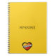 This customizable yellow notebook features a comic-style heart decorated with the name "Catherine". You can customize the default text. This is a great back-to-school gift.