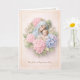 Featuring a beautiful vintage image of the Blessed Virgin Mary holding a little baby in her arms with blue and pink flowers. A scripture verse is inside.