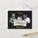 Cute and funny vintage photograph of two dressed cats sitting in a chair on a table, celebrating a birthday with cake and candles. Personalize by adding your own text.