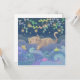 A cute illustration of a cat sleeping on clouds with magical waves and lights on a starry night
