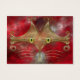 En stiliserad katt ansikte, som är gjord av glödande guld kurvor och kurvor, med bred grönt-guld öga, mot en röd rambakgrund.