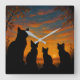 Cats Watch Sunset Fyrkantig Klocka