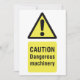 A yellow sign that says caution dangerous machinery. This design looks really effective on these Invitation