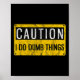 Caution I Do Dumb Things Funny Gag Warning Sign Gi Poster