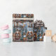 This festive design captures the joyful spirit of the holiday season, featuring an adorable dogs.Nestled in a winter wonderland, complete with a decorated Christmas tree, and beautifully wrapped presents. Snowflakes gently fall, adding a magical touch to the scene, while the vibrant colors of the holiday decorations create a warm and cheerful atmosphere.