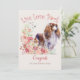 Fira glädjen över en ny lurvig familjemedlem med Hundblomster adoptionskort! Denna vackra akvarelldesign visar en söt valp omgiven av livfulla blommor - perfekt för alla hundälskare. Det glada ”Live Love Bark” -meddelandet kommer säkert att lysa upp någons dag.