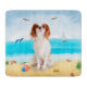 Söt hund som sitter på stranden är en perfekt presentidé för någon som älskar denna hundras.