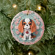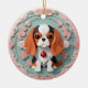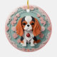 Dekorera Julgran med den här Cute Cavalier Kung Charles Rosa Flowers Papper Cining Ceramic Jul Ornament.
