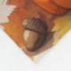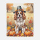 En vattenfärgsmålning stil av ett muntert sitta i hund i en hög av pulserande höst löv, omgiven av små pumpor och spridda hörn. Hund bär lite pilgrimhatt och beams med glädje, och fångade Thanksgivingens anda. I bakgrunden skapar mjuk skörd fält och träd med gyllene hud en fredlig landskapsambians. Struktur och varma, nedsmutsade hösttonar ge är en mysigt, nostalgisk perfekt för att fira säsongens skönhet.