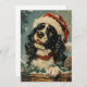 Fånga den festliga andan med vår julkortsdesign med en charmerande Cavalier Kung Charles Spanska, försedd med en julhatt. Det glatta uttrycket på valpens ansikte och det helgdag-temade tillbehör skapar en hjärtslitande scen, perfekt för att sprida julglädje till alla era kära.