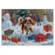 En glad Cavalier Kung-Charles-spanjor springa genom vinterscenen, som bär en festlig röd julhatt. Den här charmerande utformningen belyser rasens silke öron, mjuka natur och lekande personlighet samtidigt som man fångar julhelgens värme och glädje. En hjärtslitande vintertid fullt av festlig cheer.