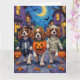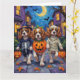 De berömvärda Cavalier Kung Charles-spanjorerna som är klädda i lekfulla Halloween-kostymer bär pumphus medan de lurar eller behandlar under det månbelysta himmel. Denna festliga utformning belyser rasens silkesaktiga jacka, milda uttryck och artiga personlighet, som perfekt fångar den förevändning som roligten av Halloween-natten har. En charmerande firande för hundälskare och Halloween fläkt.