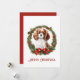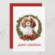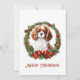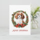 Kute julkort med Blenheim Cavalier Kung Charles spaniel-valp i en julkrans. Enkel att anpassa texten eller lämna den tom - Kate Eden Art