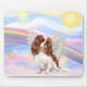 En blenheim Cavalier Kung Charles spanel provar vingar bland himlens fluffa moln innan de kan komma in i regnbåge där änglar och vänner väntar.l