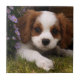 Cavalier Kung Charles Spaniel Puppy bakom blommor Kakelplatta