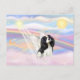 En färgad Cavalier Kung Charles spanjorer skriver ut sitt vingar bland himlens fluffa moln innan de kan komma in i regnbåge Bridge där änglar och vänner väntar.l