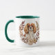 En söt höstandekrans i burnbrunt, brunt och kräm omger bilden av en Cavalier Kung Charles Spain. Hund skrivs ut två gånger på mugg, med anpassningsbarna mellan dem.