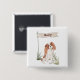 Den söta kavaliern Kung Charles Spanska Hund i färg i Blenheim (kastanj och vit) ligger utanför sitta i gräset. En flagga ovanför huvudet har hund namn. Anpassa det här för en verkligt personlig gåva till någon annan eller dig själv!